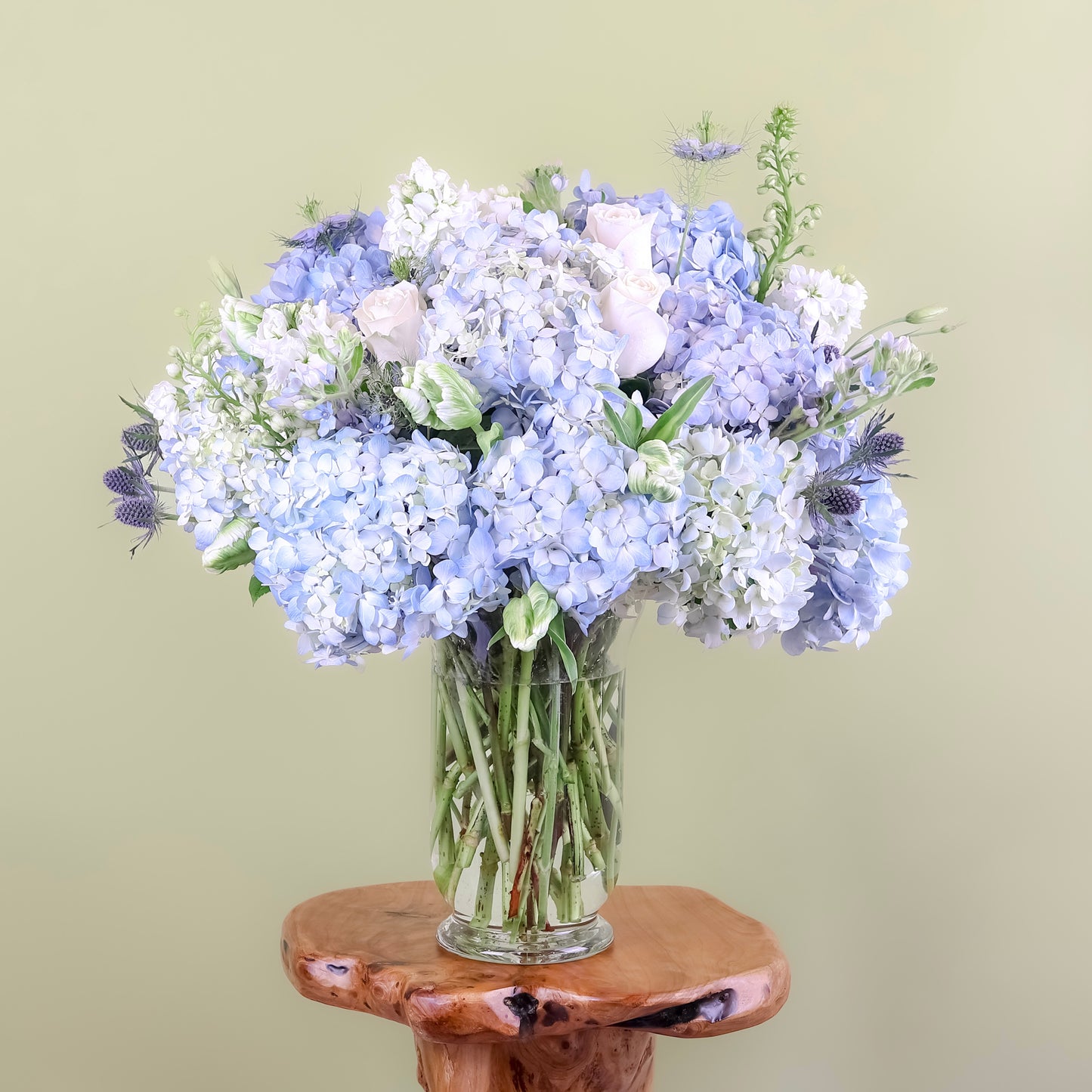 Choose from a variety of thoughtfully curated color palettes, a hand-tied bouquet or an arrangement in a vase. You’ll also be able to choose the size and style to suit your occasion or space.